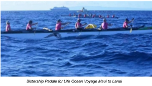 Paddle for Life is a fundraiser for the Pacific Cancer Foundation in Hawaii. Each 12-member crew raises funds, paddles from Maui to Lanai, camps overnight, and paddles back the next day.